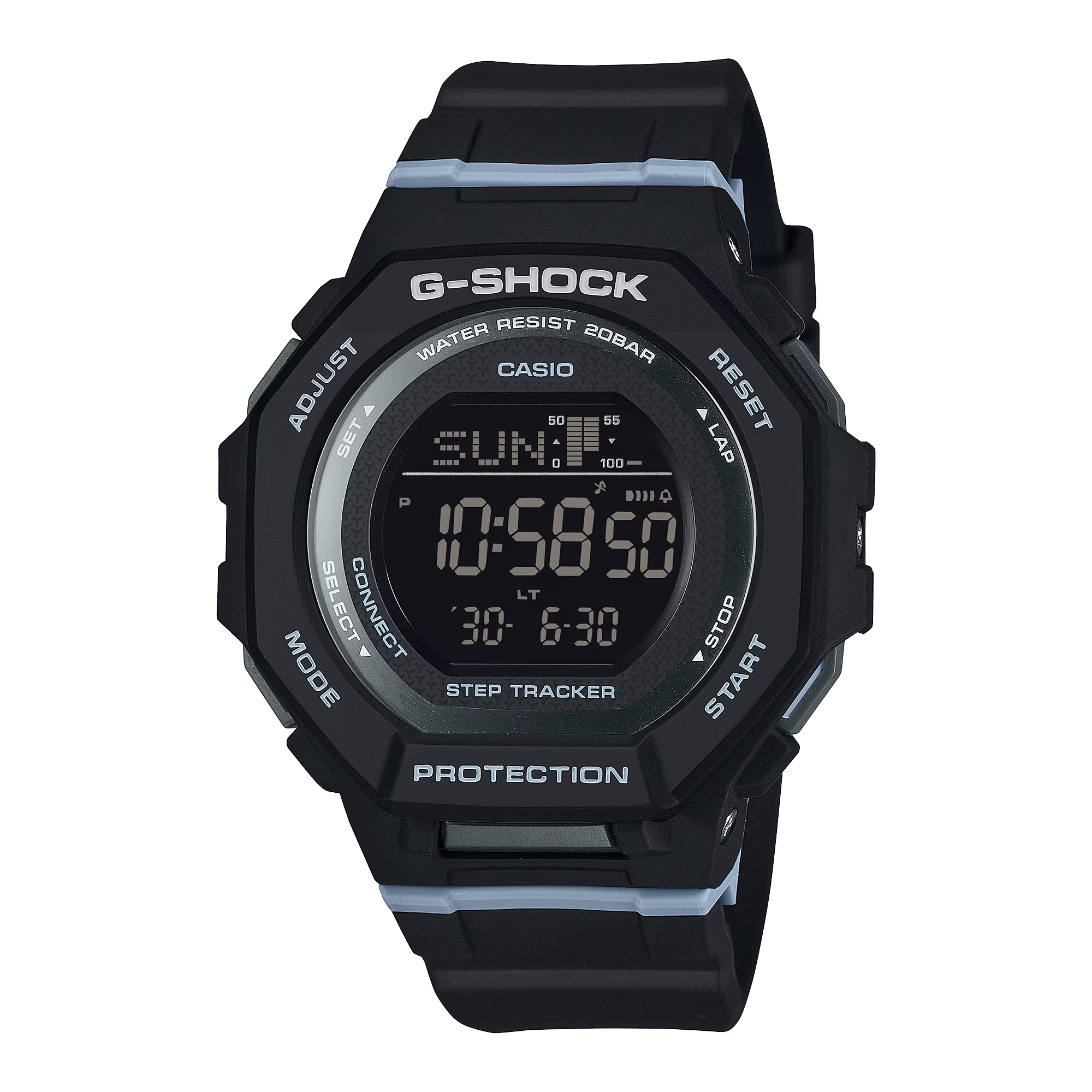 Built for movement and everyday performance, the GMD-B300-1 pairs G-SHOCK toughness with smart features. Enjoy shock resistance, 200m water resistance, step tracking, and Bluetooth® smartphone connectivity in a lightweight resin design that’s comfortable from workouts to weekends.
