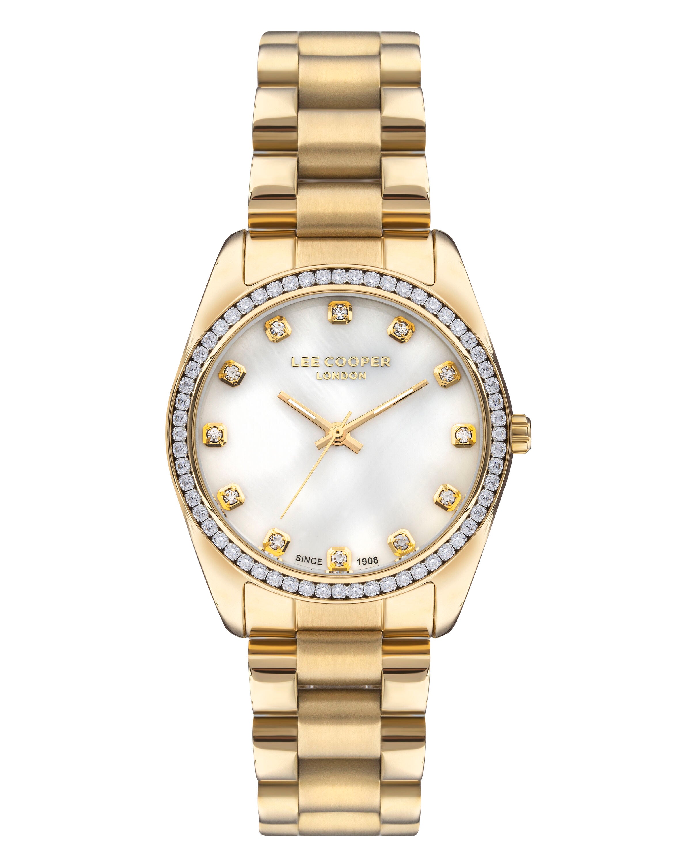Lee Cooper Women's Watches Analog Mother of Pearl Dial with Gold Stainless Steel Band, LC07478.220