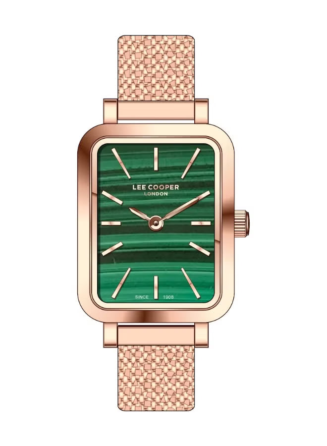 Lee Cooper Women's Analog Watch Green Dial With Rose Gold Mesh Band, LC07815.470