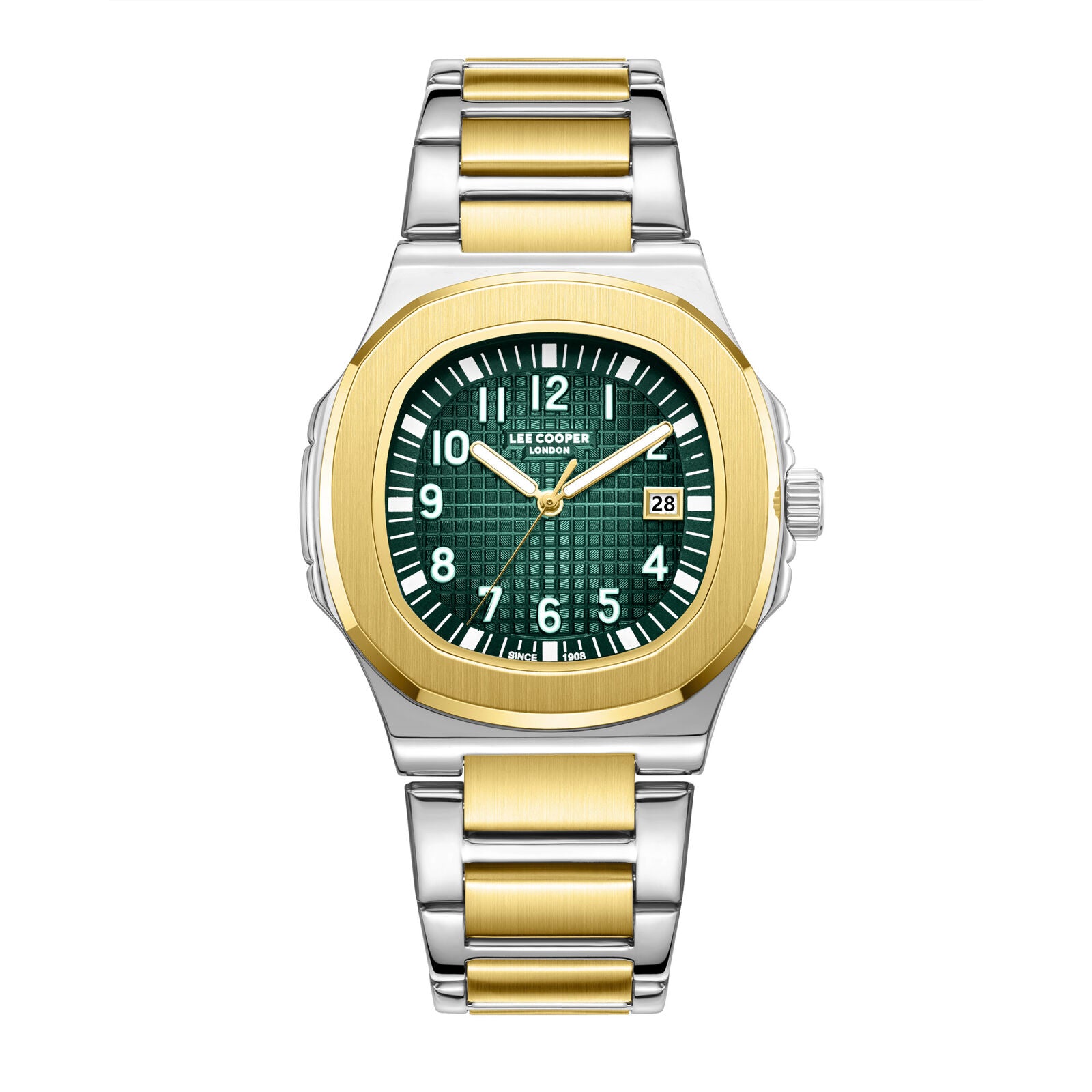 Lee Cooper Men's Analog Watch Dark Green Dial With Two Toned Silver and Gold Band,LC08259.270