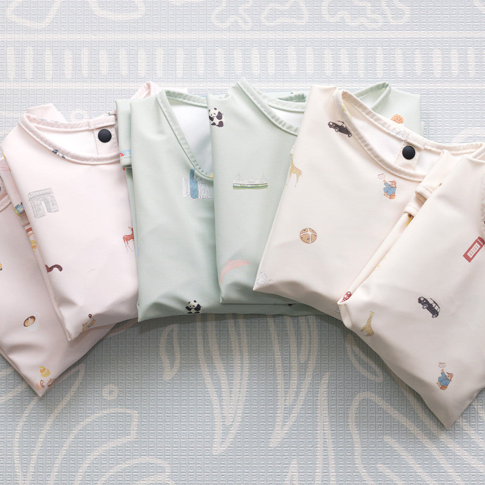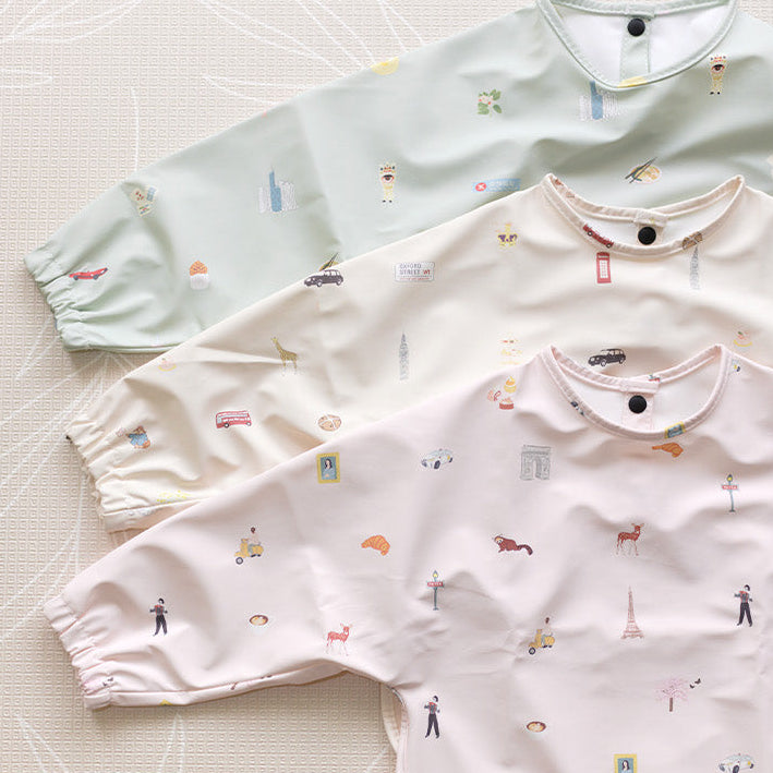 Say bonjour to our Paris City Printed Bib Sleeve, where every meal is a stroll through the streets of Paris! Featuring hand-illustrated icons like the Eiffel Tower, croissants, macarons, scooters, and even a charming mime or two this bib captures the whimsical romance of the City of Light. With full-length sleeves, a catch-all pocket, and easy-wipe fabric, it’s perfect for stylish little diners who don’t mind a little mess with their madeleines.