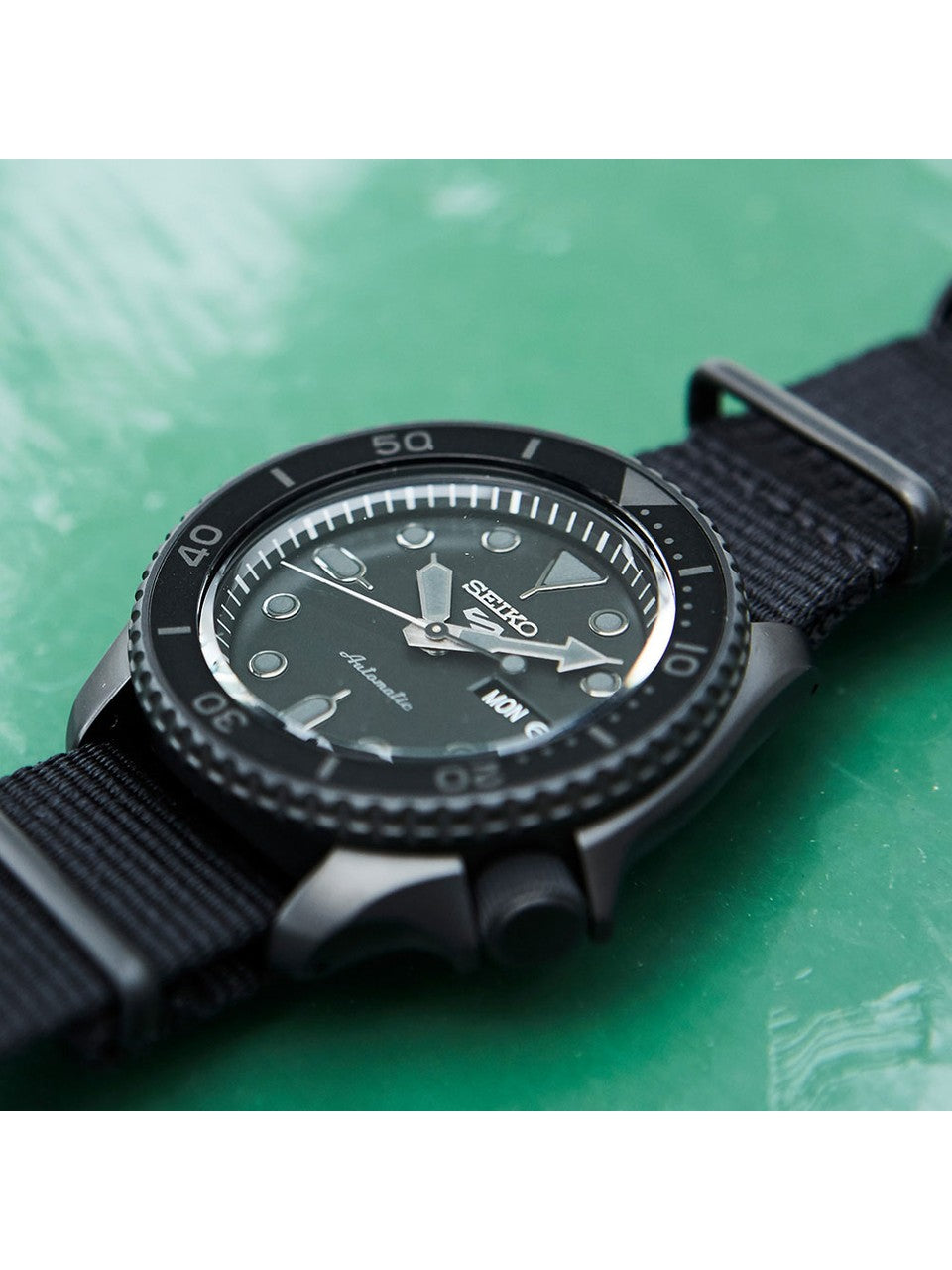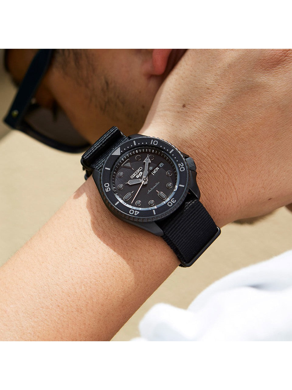 Seiko Men's Sports Mechanical Watch Analog, Black Dial Black Nylon Band, SRPD79K