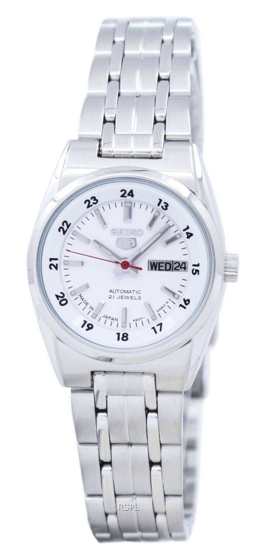 Seiko Women's Mechanical Watch Analog, White Dial Silver Stainless Band, SYMB93J