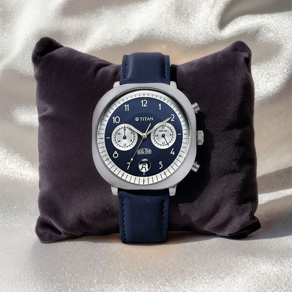 Titan Timeless Treasures Men's Watch Analog Blue Dial With Blue Leather Strap, 10022SL01