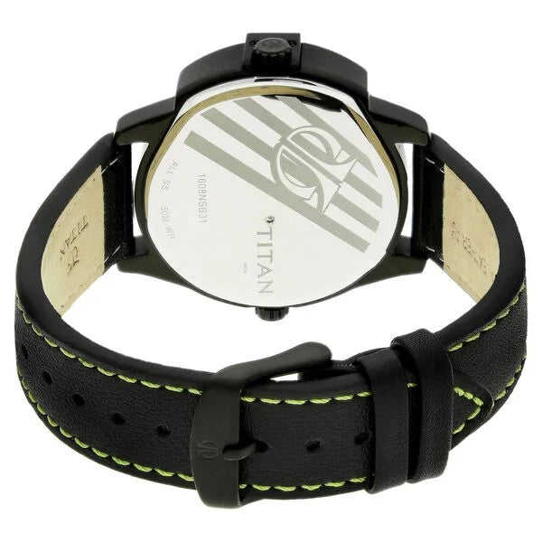 Titan Men's Watch Analog, Black Dial With Black Leather Strap, 1608NL01