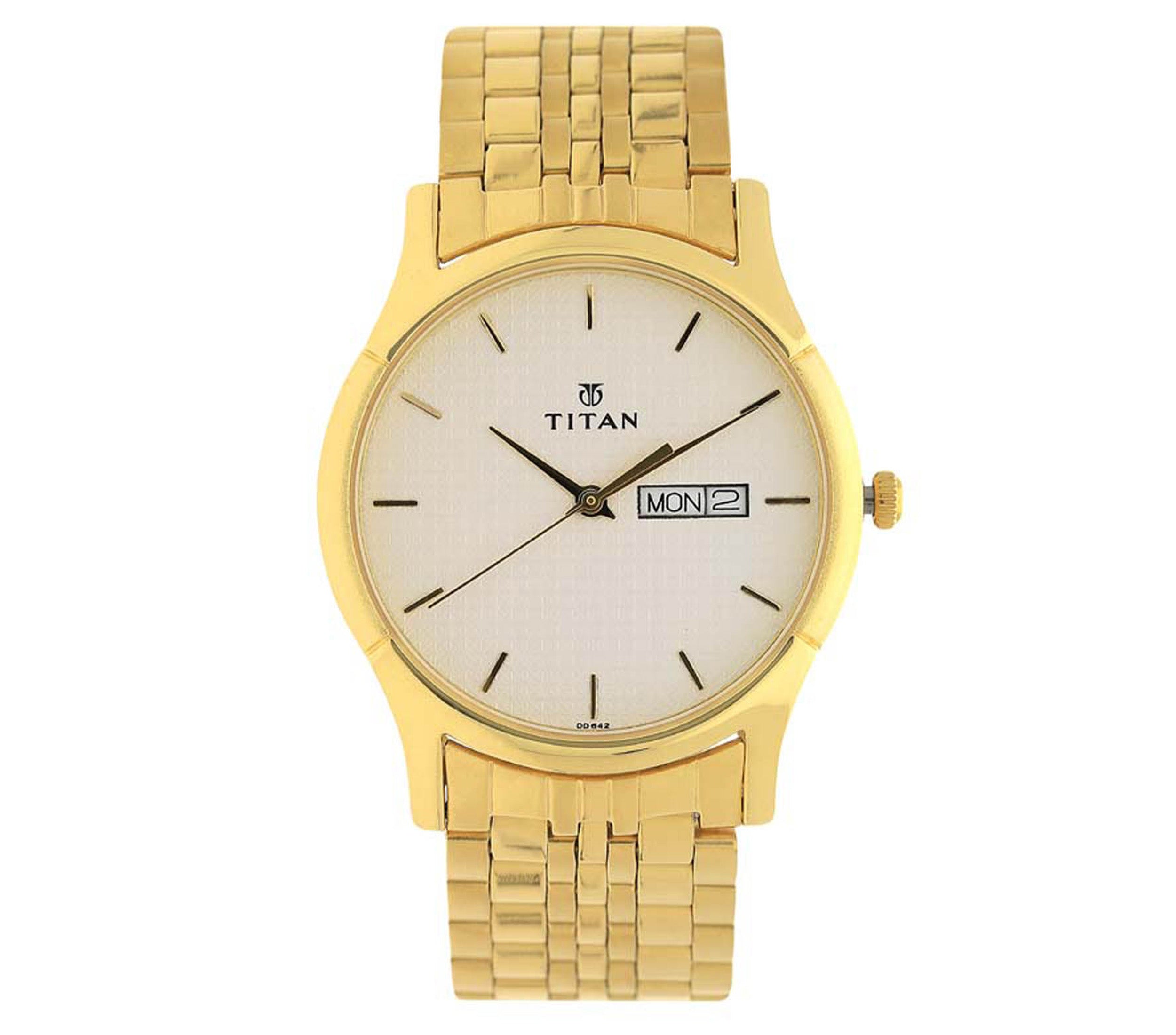 Titan Men's Watch Karishma Collection Analog, White Dial Gold Stainless Strap, 1636YM01