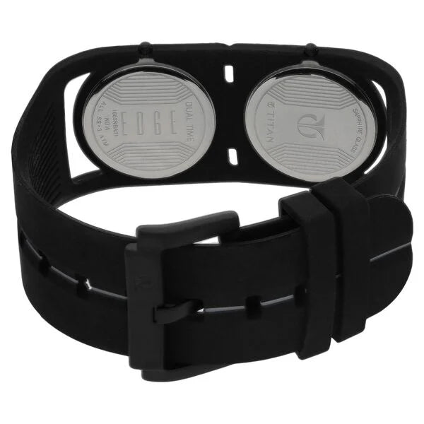 Titan Men's Sport Edge Watch Dual time, Black Dial With Black Silicone Strap, 1653NP01