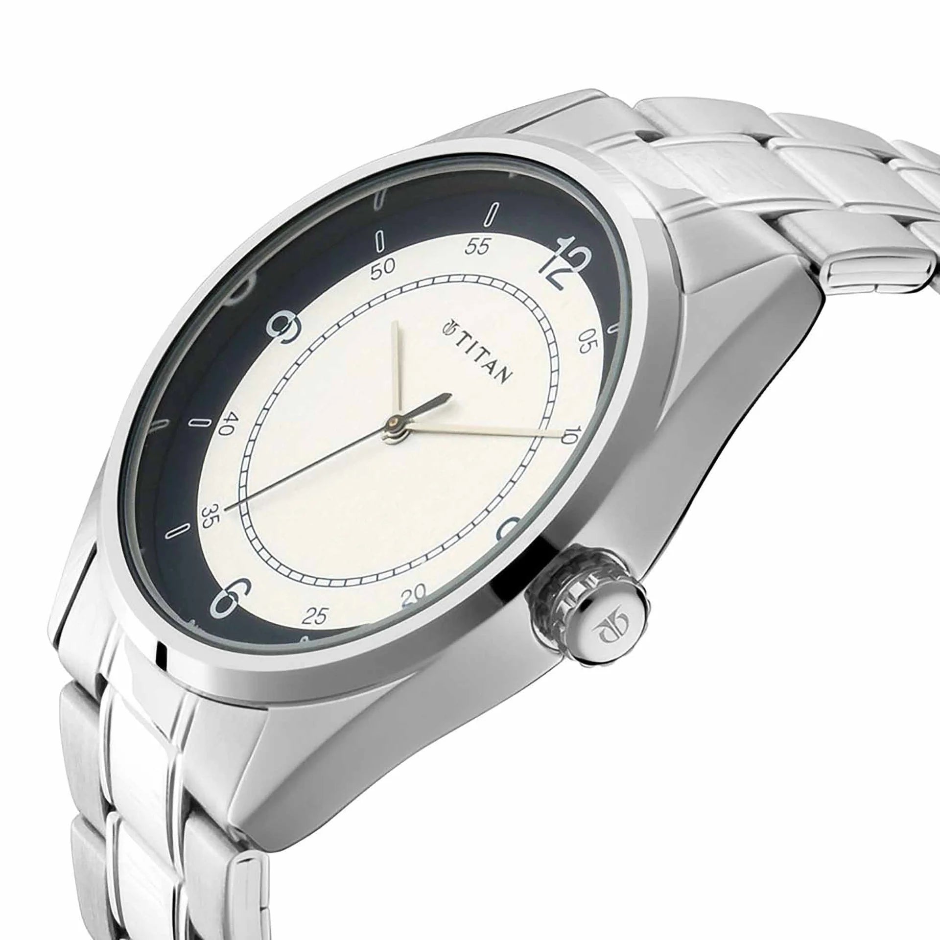 Titan Timeless Charm Men's Watch Analog White Dial With Silver Stainless Steel Strap, 1729SM04
