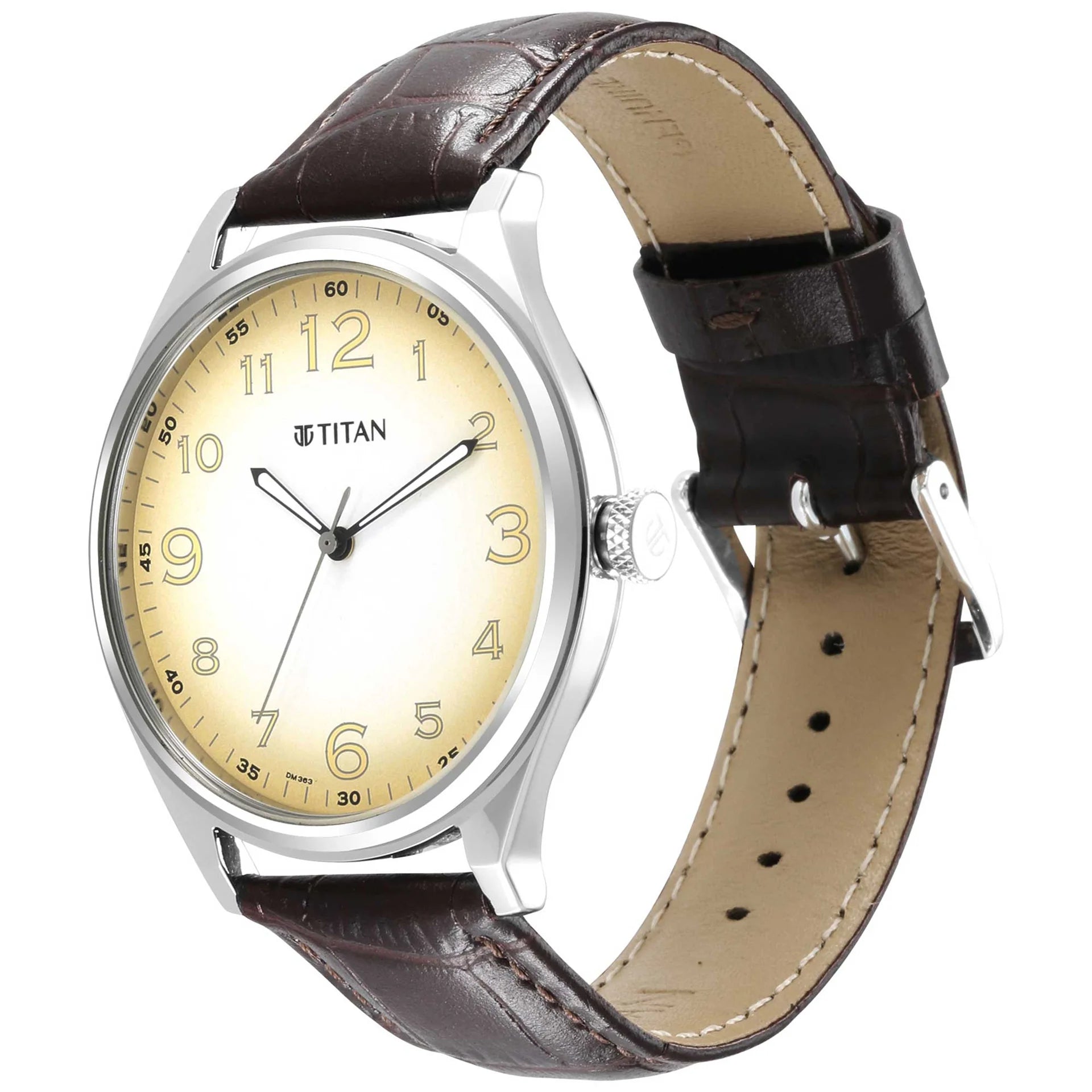 Titan Trendsetters Men's Watch Analog Beige Dial With Brown Leather Strap, 1802SL14