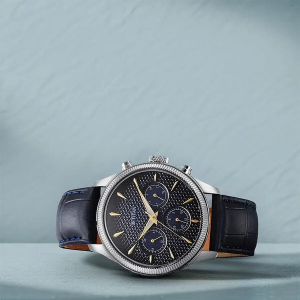 Titan Regalia Opulent Men's Watch Analog Blue Dial with Blue Leather Strap, 1805SL13