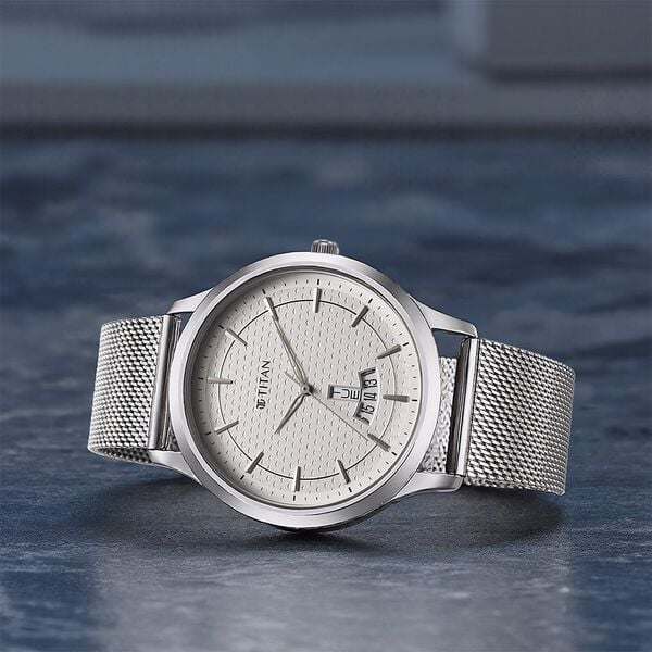 Titan Karishma Men's Watch Analog Silver Dial With Silver Stainless Steel Strap, 1825SM10