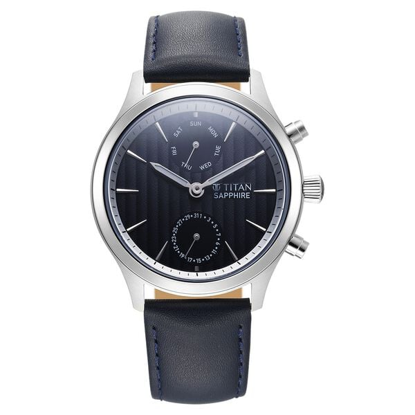 Titan Sapphire Men's Multifunction Watch Analog Blue Dial with Blue Leather Strap, 1874SL02