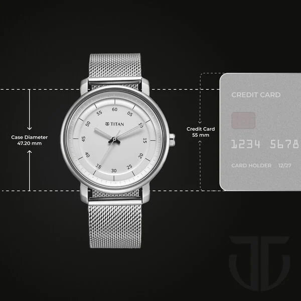 Titan Workwear Men's Watch Analog Silver Dial with Silver Mesh Band, 1884SM01
