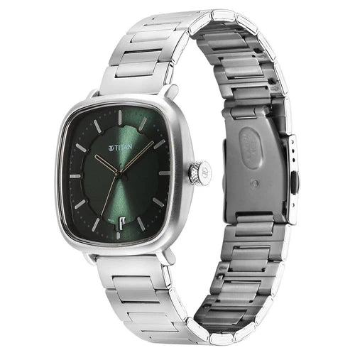 Titan Shaped Case Men's Watch Analog Green Dial with Silver Stainless Steel Band, 1885SM01 About The Brand:...
