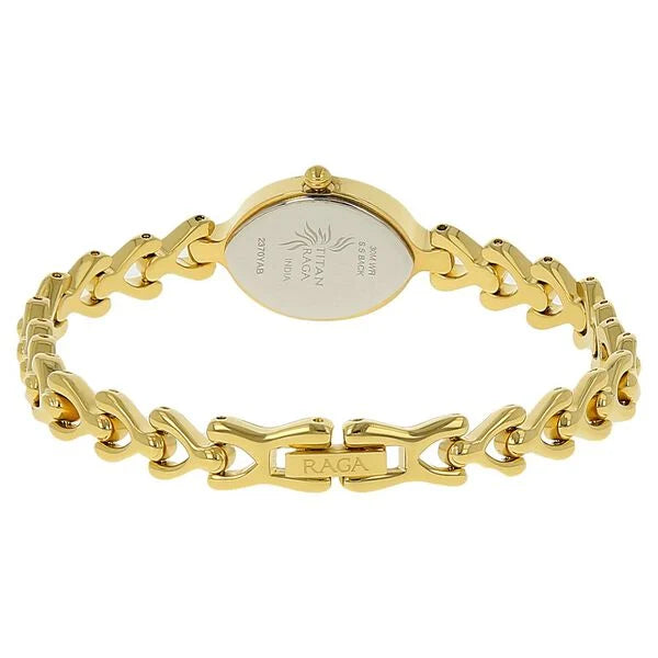 Titan Raga Women's  Watch White Dial With Gold Metal Strap, 2370YM01
