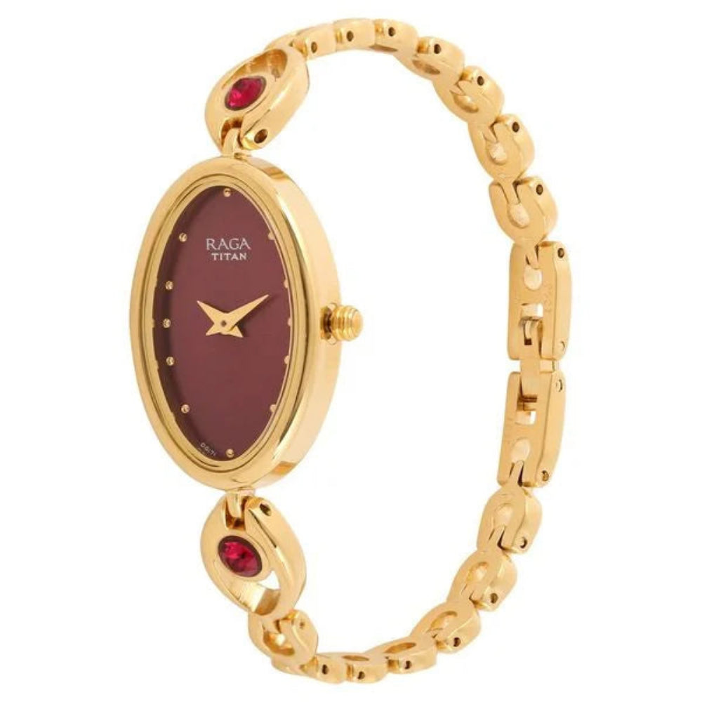 Titan Raga Women's Watch Analog Red Dial with Gold Stainless Steel Band, 2527YM03