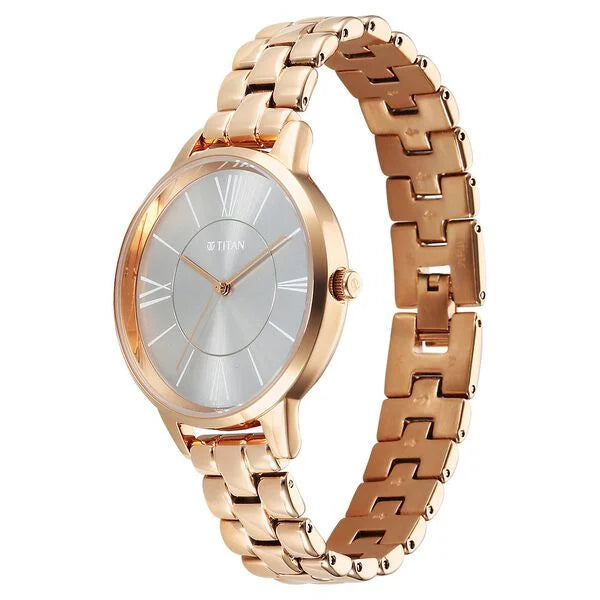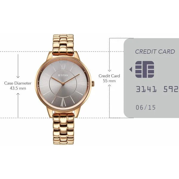 Titan Women's Analog Watch Grey Dial With Rose Gold Stainless Steel Strap , 2648WM10