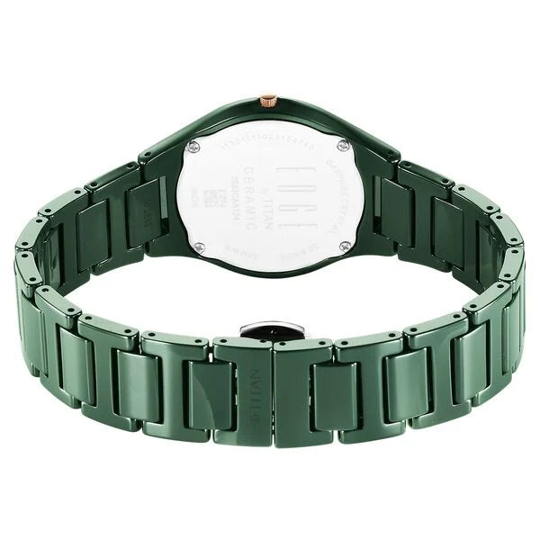 Titan Edge Women's Watch Bicolour Quartz Analog Green Dial With Green Ceramic Strap, 2653KC12