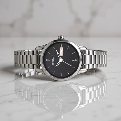 Titan Lagan Women's Watch Analog Black Dial with Silver Stainless Steel Band, 2656SM03 About The Brand: Titan,...