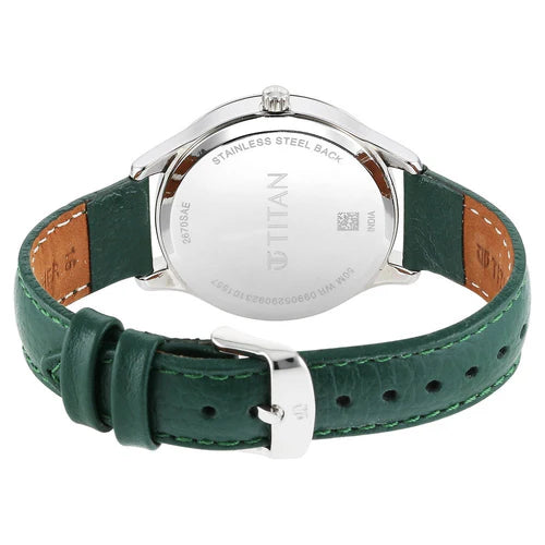 Titan Yin & Yang Women's Watch Analog Green Dial With Green Leather Strap, 2670SL05