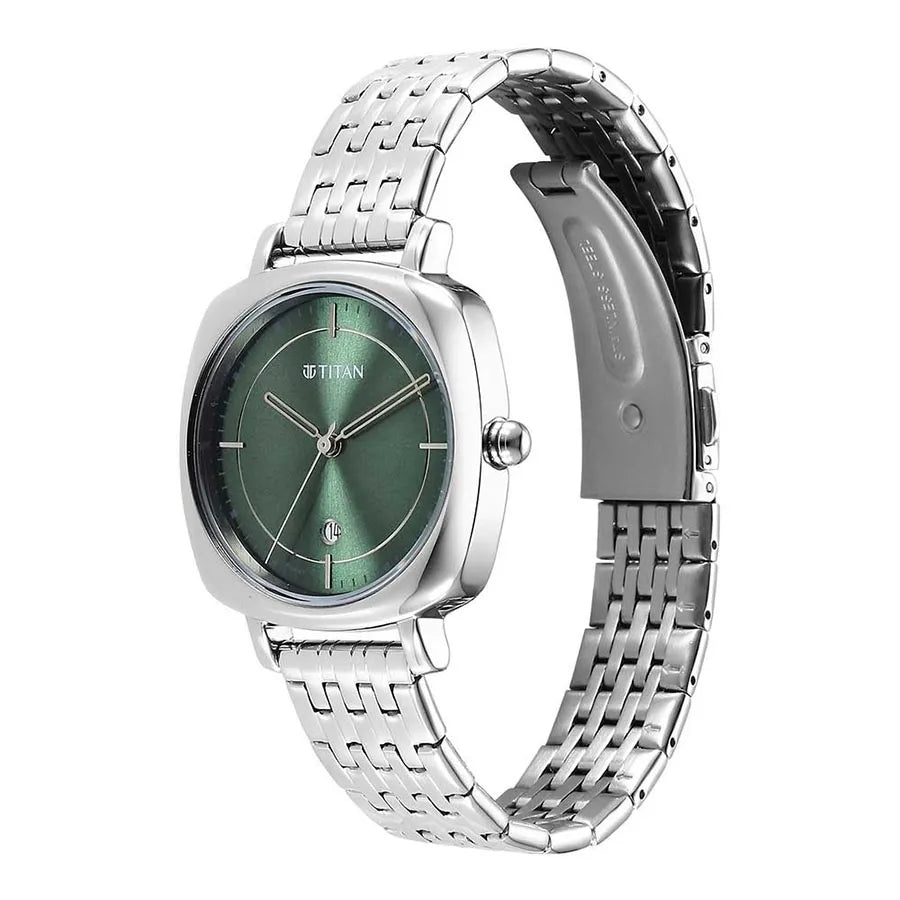 Titan Shaped Cases Women's Watch Green Dial With Silver Stainless Steel Band, 2730SM01