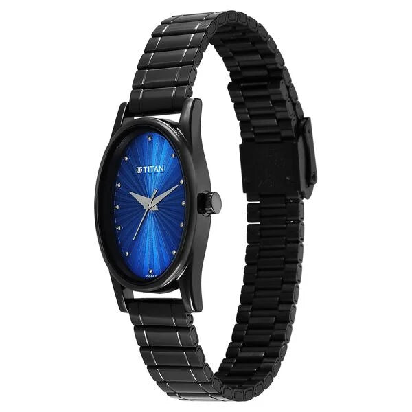 Titan Women's Watch Analog Blue Dial with Black Stainless Steel Band, 2759NM01
