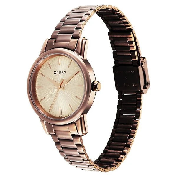 Titan Women's Watch Analog Beige Dial with Brown Stainless Steel Band, 2760QM01V