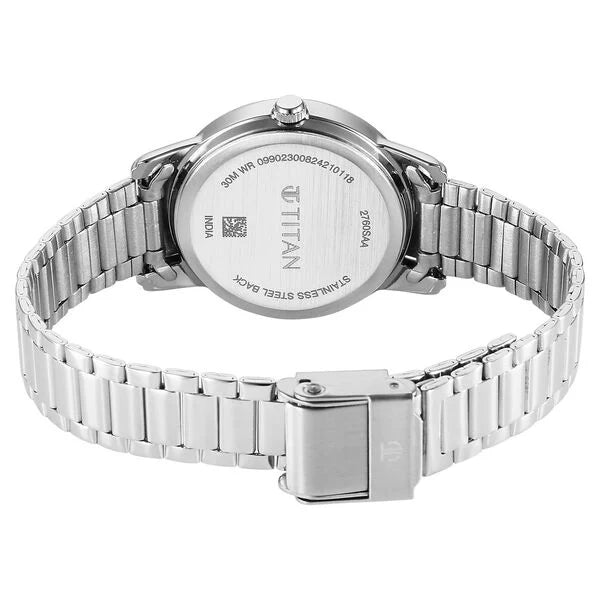 Titan Women's Watch Analog Blue Dial with Silver Stainless Steel Band, 2760SM02