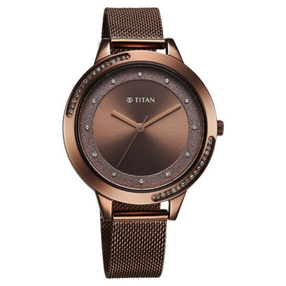 Titan Women's Watch Analog Brown Dial with Brown Mesh Band, 2764QM01