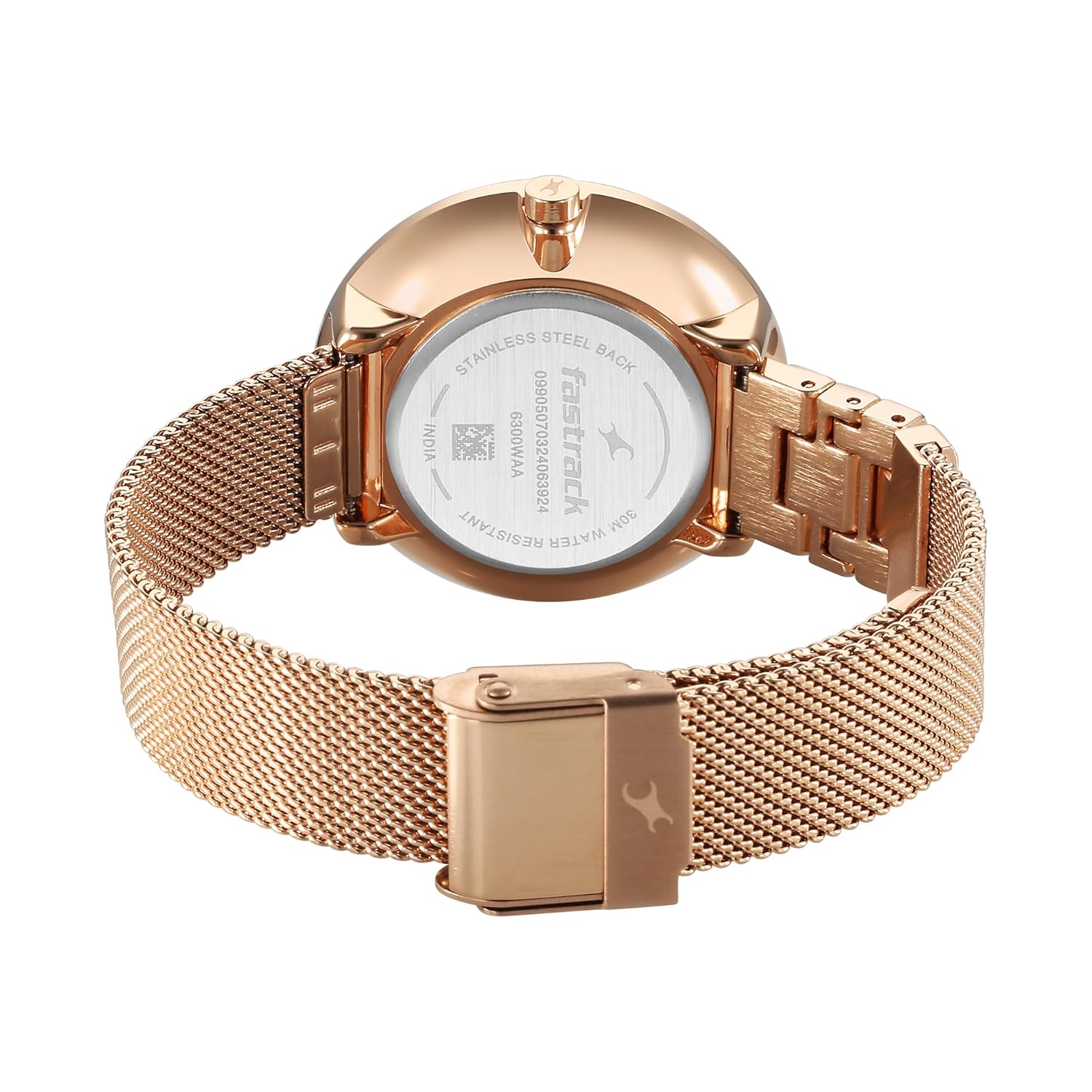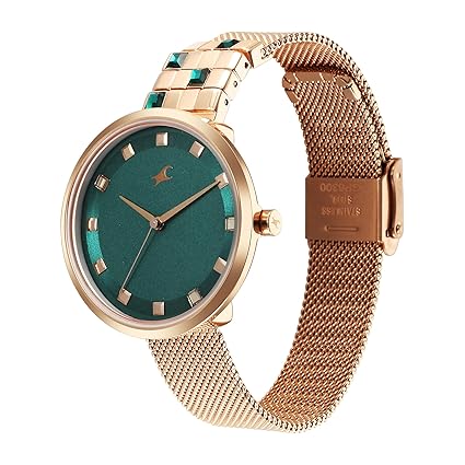 Fastrack Fleek Women's Watch Analog Green Dial with Rose Gold Stainless Steel Band, 6300WM02