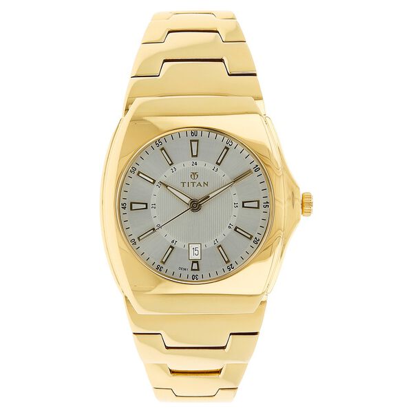 Titan Men's Regalia Watch Analog White Dial With Gold Stainless Steel Band, 90021YM03