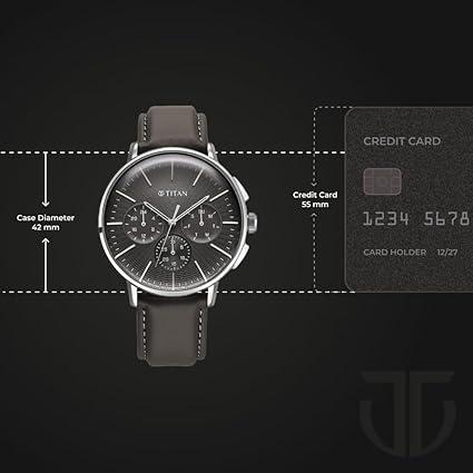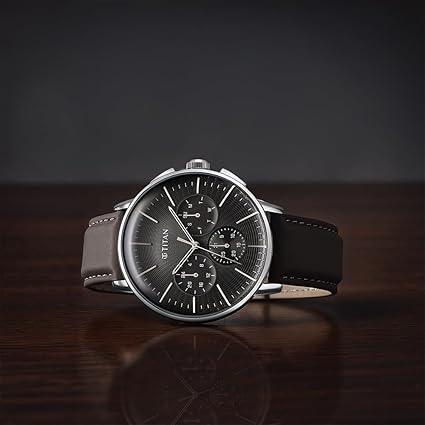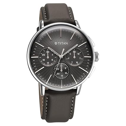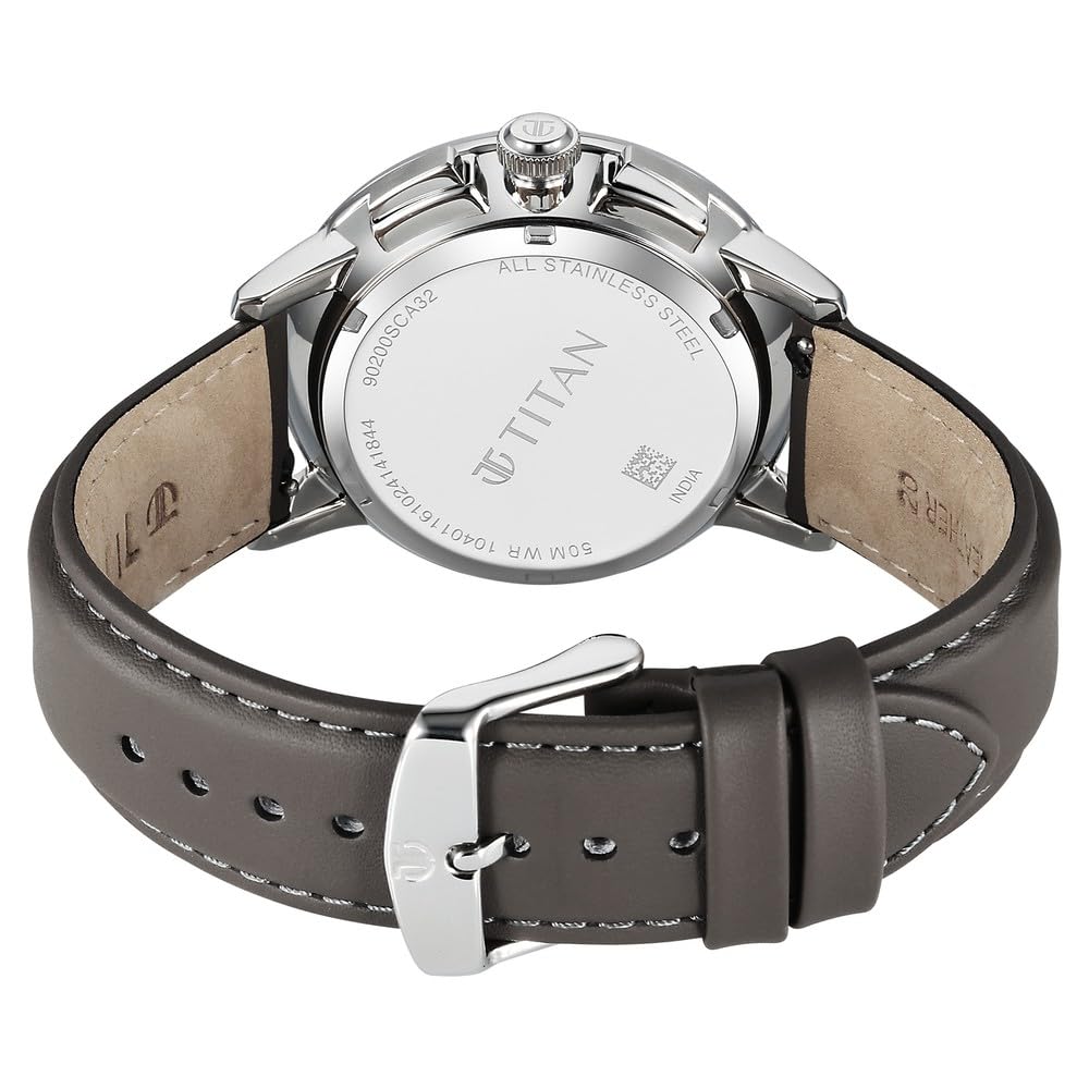 Titan Light Leathers Men's Multifunction Watch Anthracite Dial with Grey Leather Strap, 90200SL02