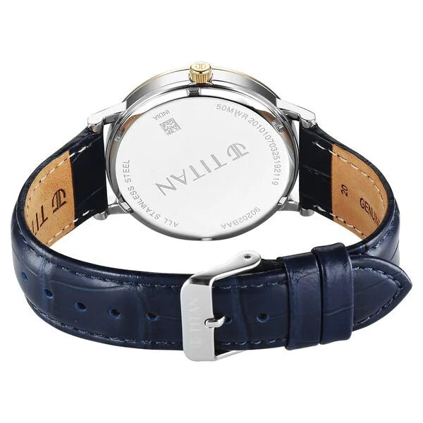 Titan Elegance Analog Men's Watch with Date by Hand and Blue Dial with Blue Leather Strap, 90202BL01