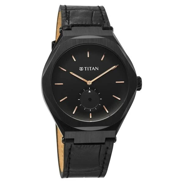 Titan Contour Analog Men's watch with Small Second and Black Dial and Black Leather Strap, 90210NL01