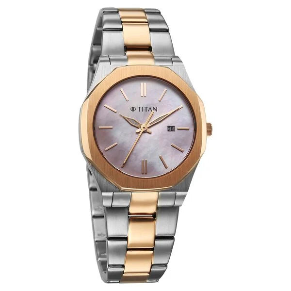 Titan Workday Wonders Quartz Analog Women's watch with Date and Pink Mother Of Pearl Dial with Stainless Steel Strap, 95295KM01