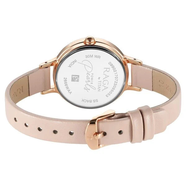Titan Raga Power Pearls Women's Watch Analog Mother Of Pearl Dial With Pink Leather Strap, 2666WL04