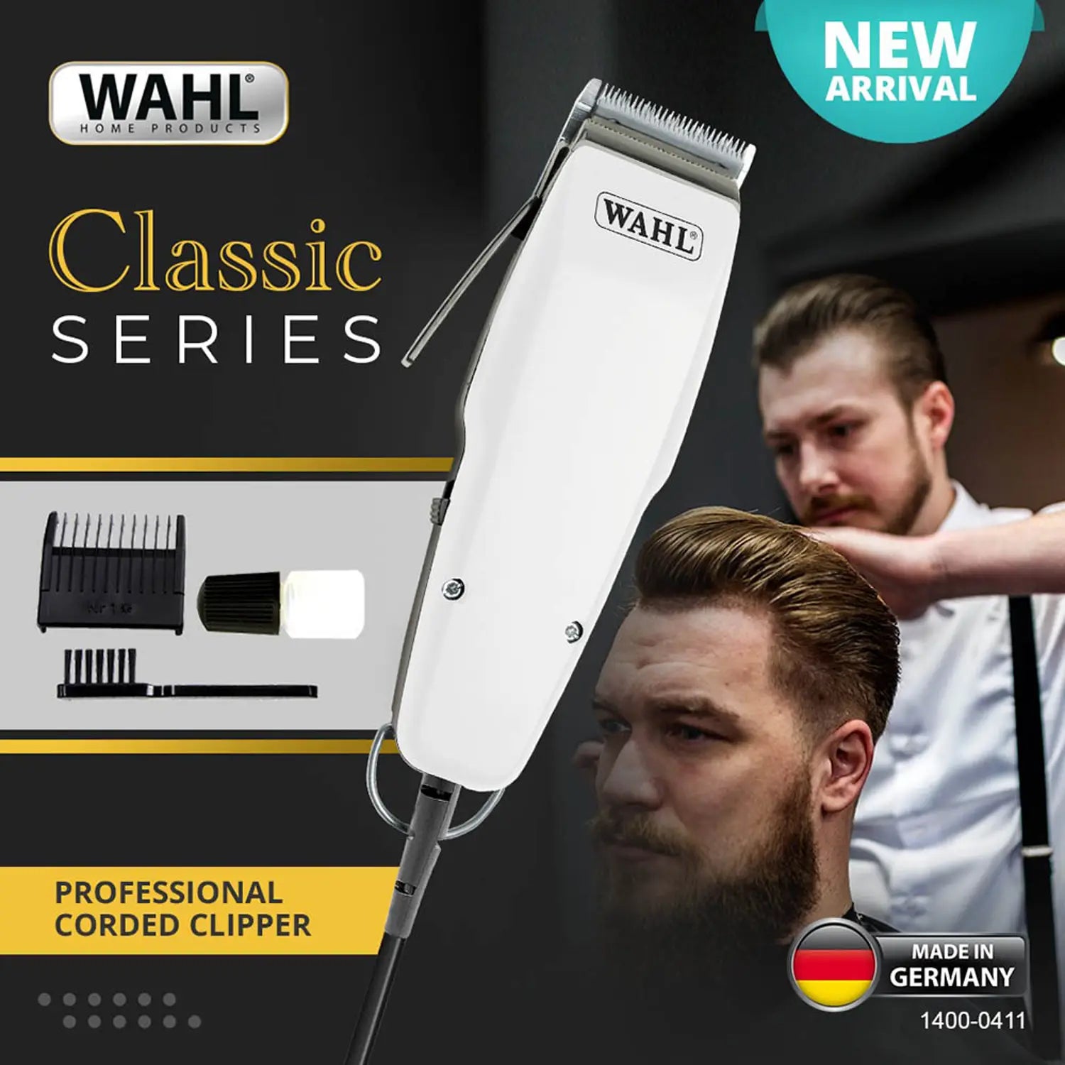 Wahl Classic Series Clipper WA-1400-0411 offers reliable performance with a durable motor and precision blades. A professional-grade corded clipper in a clean white finish.